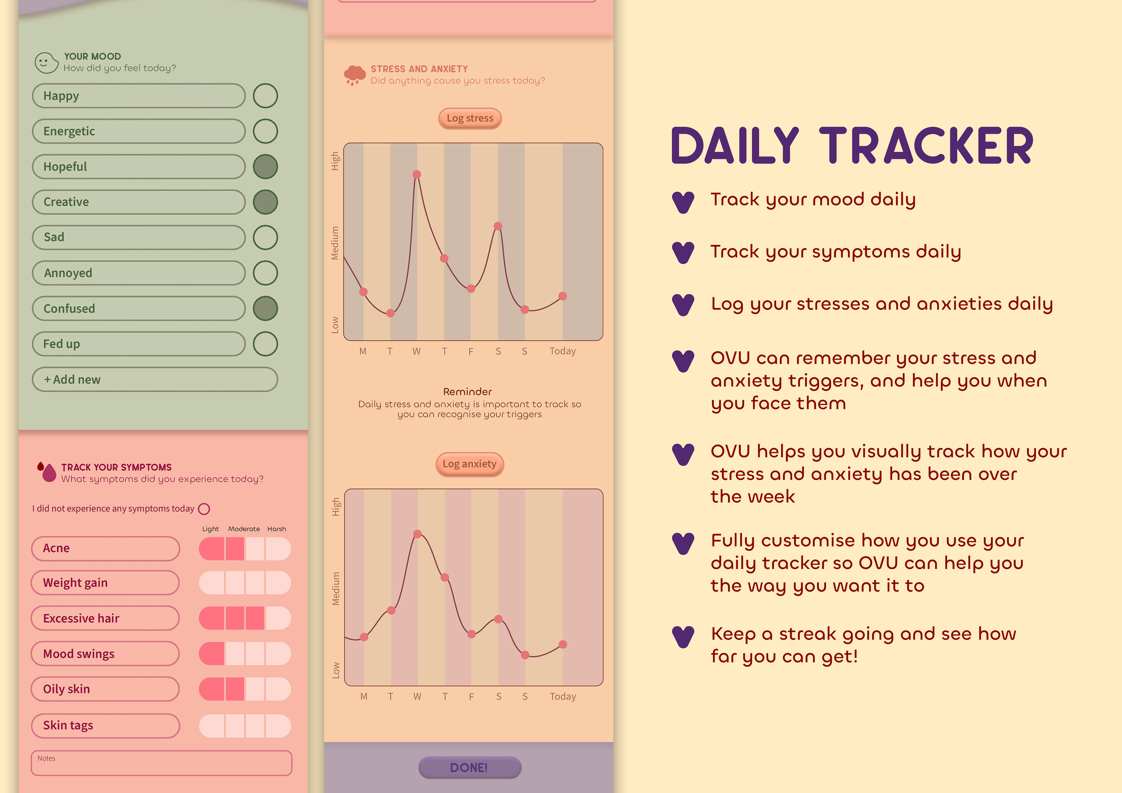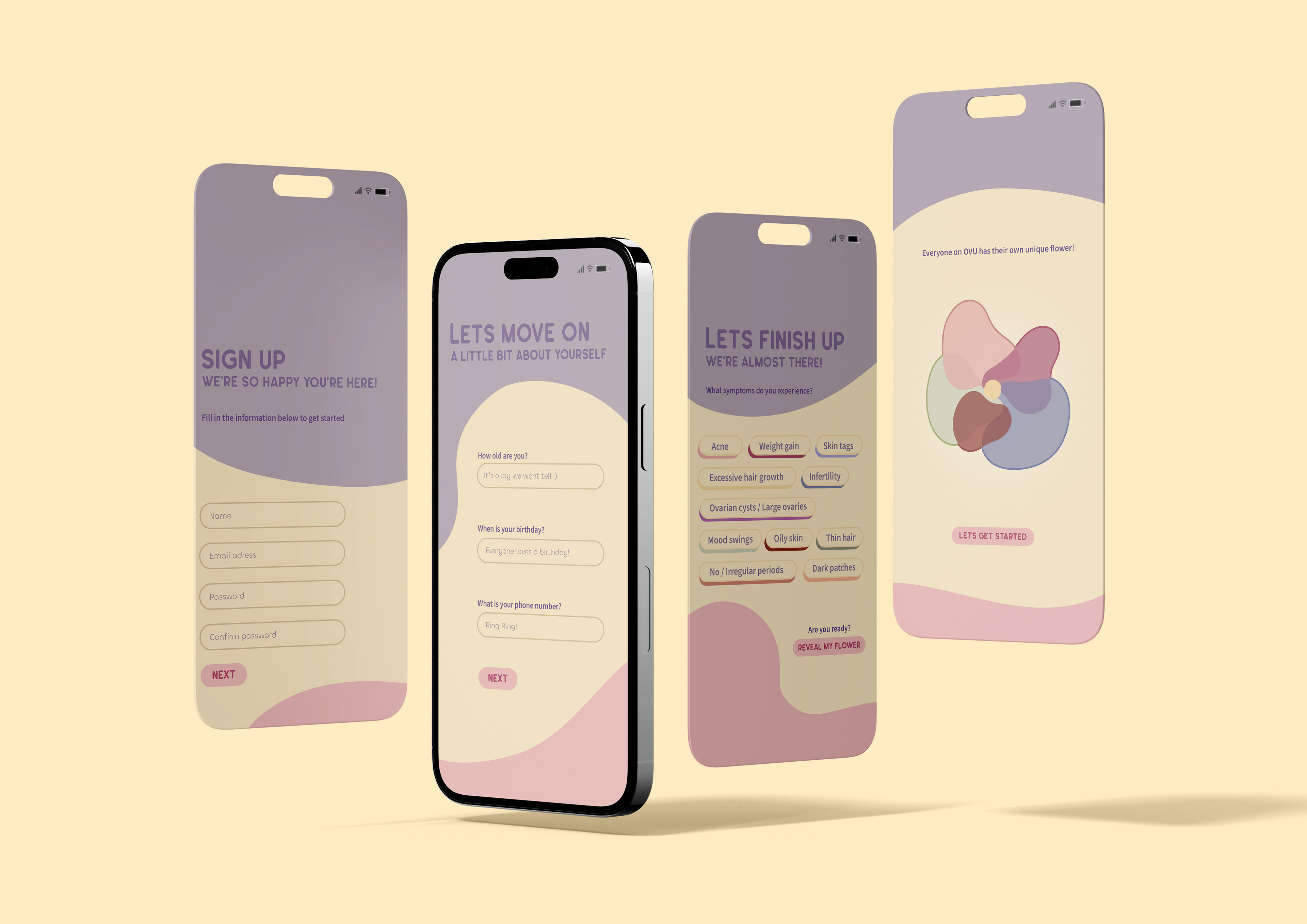OVU is an app dedicated to helping women with PCOS manage their mental health. I designed this branding as a part of my BA in Graphic design.