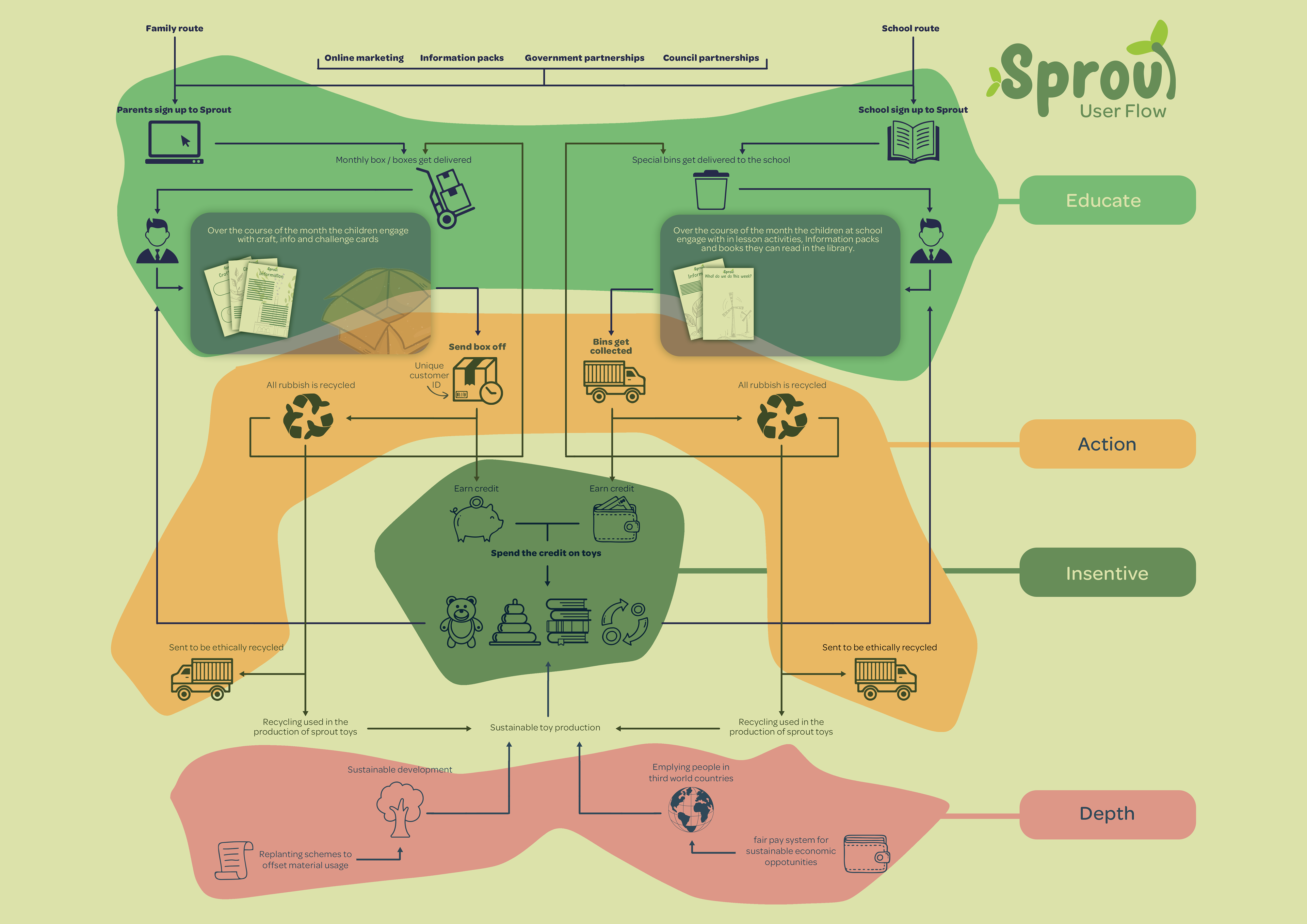 Sprout is a brand I designed as a part of my MA in Graphic design, dedicated to educating children around sustainable practices and make recycling accessible and effective. Sprout works in raising the next generation to be environment aware.